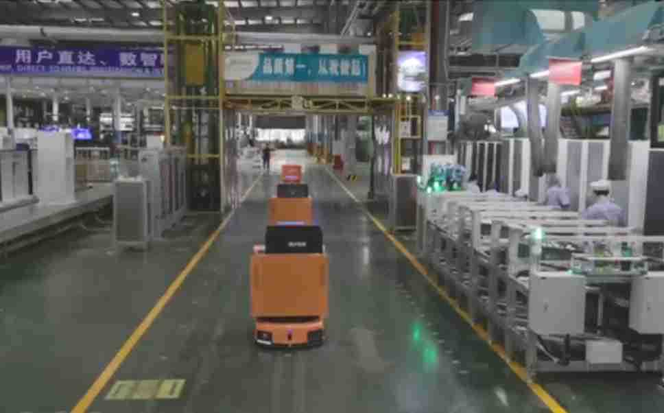 为车载冰箱物流配送打造的智能解决方案,,,包含产中物流通过潜伏举升AMR搬运至线边,,,,产后成品物流智能仓储,,,流程包含产中物流智能齐套入库,,,,线边安灯叫料AMR智能配送至线边,,,成品入库、、、、出库,,,,通过无人堆高车机器人,,,智能仓储管理替代人工作业管理,,实现更高存储、、更高效率、、更具柔性化的解决方案。。。。